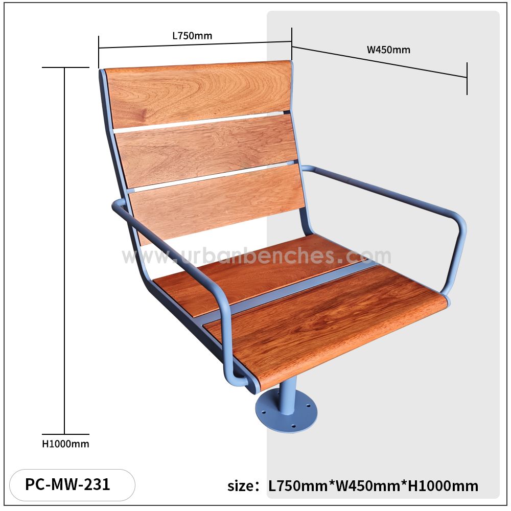 Imagine a bench that doesn’t just serve as a place to sit, but becomes a subtle highlight of your outdoor space—whether it’s a bustling city square, a quiet park path, a cozy residential courtyard, or a lively commercial patio. Our PC-MW-231 Metal+Solid Wood Park Chair is crafted to blend seamlessly with its surroundings, balancing timeless style with the ruggedness needed for daily outdoor use. It’s designed to stand up to the elements, from scorching sun and sudden rain showers to crisp autumn winds, so you never have to worry about it losing its charm or functionality over time. Sitting on PC-MW-231 Metal+Solid Wood Park Chair feels like a small comfort you didn’t know you needed: the seating surface is shaped to cradle you just right, so even a long chat with a friend or a moment of quiet to watch the world go by never leaves you feeling strained. The materials feel sturdy yet inviting—no cold, harsh edges, just a well-made piece that feels reliable from the first sit. And because outdoor spaces come in all styles, PC-MW-231 Metal+Solid Wood Park Chair works with whatever vibe you’re going for: sleek and modern for urban spots, warm and approachable for parks, or understatedly elegant for commercial areas. It’s the kind of bench that doesn’t demand attention, but earns it—through how PC-MW-231 Metal+Solid Wood Park Chair holds up year after year, how it makes every pause feel more pleasant, and how it fits right in, like it was always meant to be there. Whether you’re looking to enhance a public space for visitors or add a functional, inviting touch to a private outdoor area, PC-MW-231 Metal+Solid Wood Park Chair turns a simple “place to rest” into something that elevates the whole space.